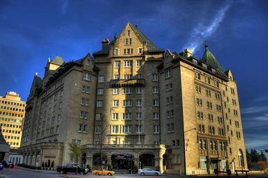 Keywords: edmonton canada city urban hotel building architecture outside sky clouds landmark historical