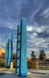 Keywords: edmonton canada convergence fountain water sky clouds architecture structure outside buildings city cities fall autumn