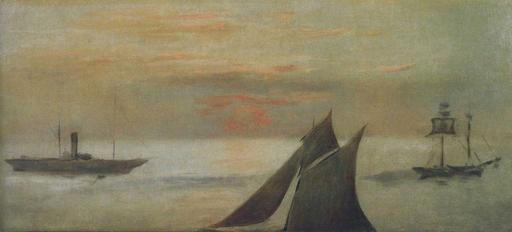 | Keywords: Édouard Manet - 'Bateaux en mer, soleil couchant.jpg Artwork creator Édouard Manet 1868 oil canvas 42 x 94 cm Musée Malraux Le Havre accession number object history credit line Artbook Paintings of seascapes by Édouard Manet Paintings in the musée des Beaux-Arts André Malraux PD-old-100 |