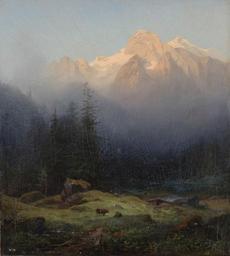 Keywords: Eduard Schleich der Ältere Eine Alpe.jpg Eduard Schleich d Ä Eine Alpe Oil on canvas 62 5 x 56 cm Creator Eduard Schleich d Ä PD-old-100 Source http //www kunsthandel-krausz de/ Eduard Schleich d Ä Artworks missing infobox template