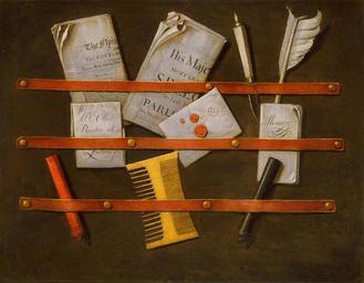 | Keywords: Edwaert Colyer Still Life ca 1696.jpg Artwork creator Evert Collier otherdate c 1696 Oil on canvas cm object history credit line Trompe l'oeil accession number http //www imamuseum org/art/collections/artwork/still-life-colyer-edwaert Indianapolis Museum of Art PD-old-100 Evert Collier European paintings in the Indianapolis Museum of Art Trompe l'oeil in England Trompe l'oeil still life paintings 1690s oil on canvas paintings in the United States Henry Bishop Letters in art Newspapers in art Quills in art Paintings of knives |
