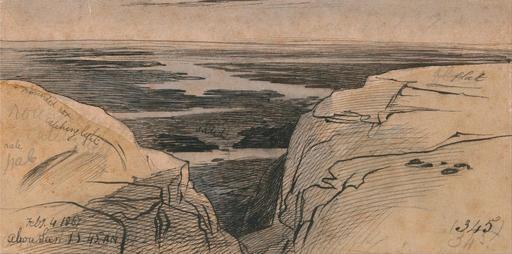 | Keywords: Edward Lear - Abu Seer - Google Art Project (2434003).jpg inscribed in black ink lower left Feby 4 1867 abou Seer 11 45 AM; in black ink lower right 3450 ; Verso in graphite upper left 90 up ; in graphite center next below top left Not on View Watercolor with pen in black ink over graphite on moderately thick slightly textured beige wove paper water cliffs landscape special url_id 7gEmLzgtBw6_Pg PD-old-100-1923 1888 Egypt by Edward Lear Abusir Google Art Project works by Edward Lear | ||||