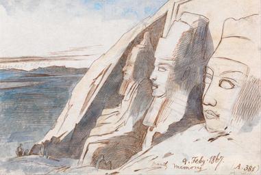 | Keywords: Edward Lear - Abu Simbel - Google Art Project (2314609).jpg inscribed in brown ink lower right 9 Feby 1867 partly memory A 381 ; verso center 93 98 crossed out Longwise upper ; in graphite upper right 229 ; in graphite lower left A M Not on View Watercolor with pen in brown ink over graphite on medium slightly textured cream wove paper architectural subject water stone monument temple lake figures representations carvings special url_id LQGTAQWESiY1hg PD-old-100-1923 1888 Egypt by Edward Lear Great Temple of Abu Simbel in art Google Art Project works by Edward Lear |