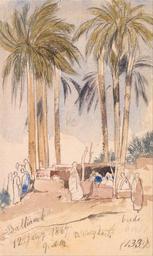 | Keywords: Edward Lear - Ballianeh - Google Art Project.jpg inscribed in gray ink lower left Ballianeh 12 Jany 1867 9 AM ; in gray ink lower right 133 Not on View Watercolor with pen in brown and gray ink on moderately thick slightly textured cream wove paper palm trees sand figures representations landscape special url_id tQHNaThizy8WOA PD-old-100-1923 1888 Egypt by Edward Lear Google Art Project works by Edward Lear | ||||