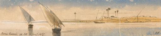 | Keywords: Edward Lear - Beni Eddeir - Google Art Project.jpg Inscribed in brown ink lower left Beni Eddeir 11 30 2 Jany 1867 ; in brown ink lower right 25 ; Verso in graphite top center 5 up next below top 57 Not on View Watercolor with pen in brown ink over graphite with gouache on moderately thick moderately textured cream wove paper sky palm trees river riverbank sails figures representations landscape marine art boats special url_id zQFFt3ztQ38YYQ PD-old-100-1923 1888 Egypt by Edward Lear Nile in art Google Art Project works by Edward Lear Egyptian feluccas in art |