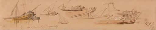 | Keywords: Edward Lear - Boats on the Nile - Google Art Project.jpg inscribed in brown ink lower right 97 ; Verso in graphite upper left 20 up Top Not on View Watercolor with pen in brown ink and gouache over graphite on moderately thick slightly textured blue wove paper sails studies visual works figures representations genre subject boats special url_id WwFo-s-MaEUwKw PD-old-100-1923 1888 Egypt by Edward Lear Nile in art Google Art Project works by Edward Lear | ||||