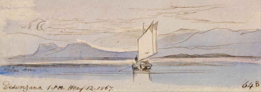 | Keywords: Edward Lear - Desenzano - Google Art Project.jpg inscribed in brown ink lower left Desenzano 1 PM May 12 1867 ; in brown ink lower right 64B ; Verso in graphite center 381 Not on View Watercolor with pen in brown ink over graphite on thick rough beige wove paper sky water lake mountains sail landscape marine art boat special url_id dgFFzSmHhZKm3Q PD-old-100-1923 1888 Landscape paintings by Edward Lear Google Art Project works by Edward Lear | ||||