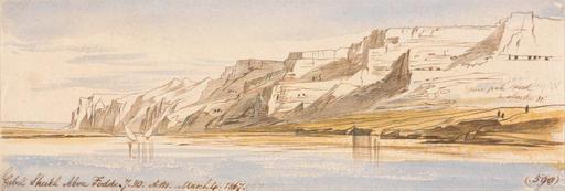 | Keywords: Edward Lear - Gebel Sheikh Abu Fodde, 7-30 am, 4 March 1867 (590) - Google Art Project.jpg inscribed in brown ink lower left Gebel Sheikh Abou Fodde 7 30 AM March 4 1867 ; in brown ink lower right 590 ; Verso in graphite upper left 159 up in graphite center next above lowest ; in graphite uppper center 315 Not on View Watercolor with pen in brown ink over graphite on thick rough cream wove paper sky rocks water windows cliffs river structures single built works figures representations landscape boats special url_id 9AFXnISz7v6NBA PD-old-100-1923 1888 Egypt by Edward Lear Nile in art Google Art Project works by Edward Lear |