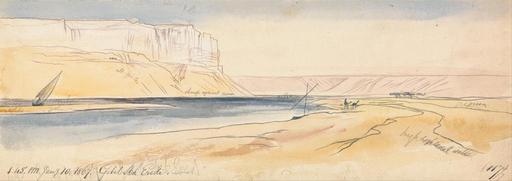 | Keywords: Edward Lear - Gebel Sheikh Eredi - Google Art Project (2314402).jpg inscribed in blue ink lower left 1 45 PM Jany 10 1867 Gebel skh Eredi ; in bllue ink lower right 117 ; Verso in graphite upper left 28 up Top Not on View Watercolor with pen in blue and cochineal over graphite on moderately thick moderately textured beige wove paper camels mammals sand water cliffs river sail figures representations landscape boat special url_id twEzwEyxp9FLAw PD-old-100-1923 1888 Egypt by Edward Lear Nile in art Google Art Project works by Edward Lear |