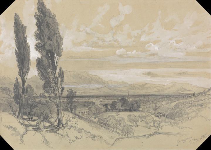 | Keywords: Edward Lear - Genezzano, 17 May 1838 - Google Art Project.jpg Inscribed in graphite lower right Genezzano 17 May 1838 ; Verso in graphite upper center 41 upright middle Inscription _Signed_and_Dated Not signed Not on View Graphite with stumping and gouache on moderately thick moderately textured gray wove paper clouds sky figures landscape environment mountains hills trees buildings aqueducts road cityscape special url_id 7wHVdWasseJWyA PD-old-100-1923 1888 Drawings by Edward Lear Google Art Project works by Edward Lear |