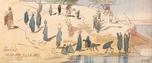 | Keywords: Edward Lear - Howatke - Google Art Project.jpg inscribed in brown ink lower left Howakte 10 30 AM Jany 8 1867 ; in brown ink lower right 100 ; Verso in graphite upper left 20 up Lowest Not on View Watercolor with pen in brown ink over graphite on moderately thick moderately textured beige wove paper camels mammals men women sand water burkas sail figures representations genre subject special url_id vQGZqP915Z6D7Q PD-old-100-1923 1888 Egypt by Edward Lear Google Art Project works by Edward Lear |