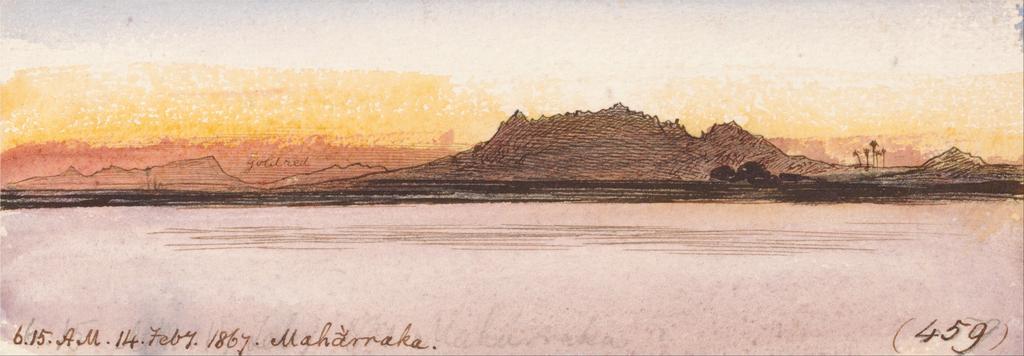 | Keywords: Edward Lear - Maharraka - Google Art Project.jpg Google Art Project watercolor London 1812 San Remo 1888 Edward male 2324653 Lear British 1812 - 1888 /collection/yale-center-for-british-art/artwork/maharraka-edward-lear/2290689/ Edward Lear Artist /artist/edward-lear/4129607/ 4129607 /collection/yale-center-for-british-art/ Yale Center for British Art 2305845 http //britishart yale edu/ 2/23/2012 10 23 05 PM /collection/yale-center-for-british-art/artwork/maharraka-edward-lear/2290689/ 1867 1867 sky sunrise water river mountains landscape Watercolor with pen in brown ink over graphite on moderately thick rough cream wove paper 62 2290689 False 1867 3/24/2012 11 04 48 AM YCBA/lido-TMS-5280 http //collections britishart yale edu/vufind/Record/1669532 Yale Center for British Art Gift of Donald C Gallup BA 1934 PhD 1939 painting 1860 1870 San Remo Creation w176 x h62 cm 1867 False 2 87640449438202 Item maharraka-edward-lear Maharraka m 176 inscribed in brown ink lower left 6 15 AM 14 Feby 1867 Maharraka ; in brown ink lower right 459 ; Verso in graphite upper left 122 up Top Right Not on View Watercolor with pen in brown ink over graphite on moderately thick rough cream wove paper sky sunrise water river mountains landscape special url_id 7AGhaJZLZ89ieg PD-old-100-1923 1888 Egypt by Edward Lear Google Art Project works by Edward Lear Maharraqa |