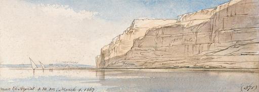 | Keywords: Edward Lear - Near El Azerat - Google Art Project (2422431).jpg inscribed in brown ink lower left near El Azerat 8 30 AM March 1 1867; in brown ink lower right 571 ; Verso in graphite upper left 155 up ; in graphite center next above lowest- left ; in graphite upper right 306 Not on View Watercolor with pen in brown ink over graphite on thick rough cream wove paper sky rocks water cliffs river sails landscape marine art boats special url_id jwEg3MnoCPpwLA PD-old-100-1923 1888 Egypt by Edward Lear Google Art Project works by Edward Lear |
