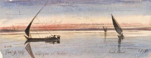 | Keywords: Edward Lear - Near Gau el Kebir - Google Art Project.jpg inscribed in brown ink lower left 6 PM Jany 9 1867 near Gau el Kebir ; in brown ink lower right 110 ; Verso in graphite center 107' Not on View Watercolor with pen in brown ink over graphite on medium slightly textured wove paper mounted on thick moderately textured cream wove paper sky water river sails marine art boats special url_id cQG6_VSkfuuIJA PD-old-100-1923 1888 Egypt by Edward Lear Google Art Project works by Edward Lear Egyptian feluccas in art |