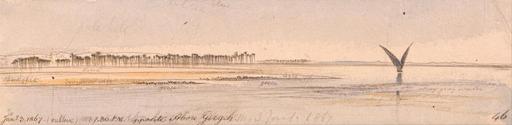 | Keywords: Edward Lear - Opposite Abu Girgeh - Google Art Project.jpg inscribed in brown ink lower left Jany 3 1867 - vulture 1 30 PM opposite Abou Girgeh ; in brown ink lower right 46 ; Verso in graphite upper left W 8 up next above lowest 68 Not on View Watercolor with pen in brown ink over graphite on moderately thick moderately textured beige wove paper birds vulture sky geese palm trees water river genre subject special url_id zwGztTrPWag-6Q PD-old-100-1923 1888 Egypt by Edward Lear Google Art Project works by Edward Lear |