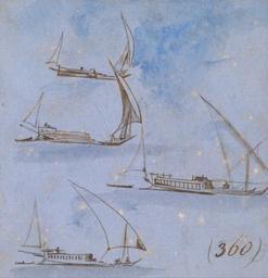 Keywords: Edward Lear - Studies of boats on the Nile - Google Art Project.jpg inscribed in brown ink lower right 360 ; Verso in black ink center 98 up Top line middle Not on View Watercolor with pen in brown ink over graphite on medium slightly textured blue laid paper sails studies visual works marine art boats special url_id pAEdn0ryw-HtyQ PD-old-100-1923 1888 Egypt by Edward Lear Google Art Project works by Edward Lear Egyptian feluccas in art