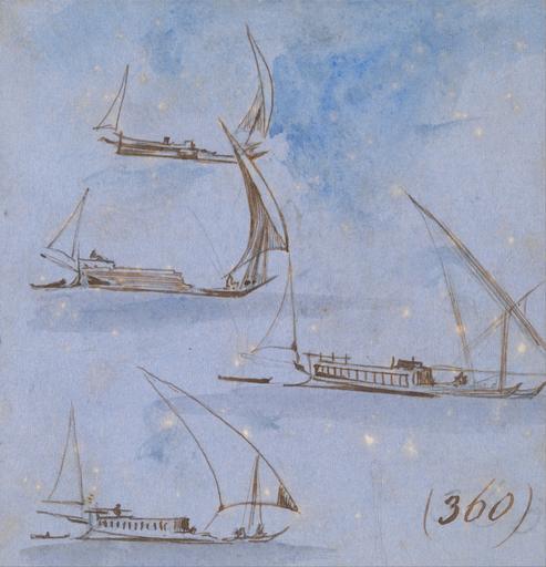 Keywords: Edward Lear - Studies of boats on the Nile - Google Art Project.jpg inscribed in brown ink lower right 360 ; Verso in black ink center 98 up Top line middle Not on View Watercolor with pen in brown ink over graphite on medium slightly textured blue laid paper sails studies visual works marine art boats special url_id pAEdn0ryw-HtyQ PD-old-100-1923 1888 Egypt by Edward Lear Google Art Project works by Edward Lear Egyptian feluccas in art |