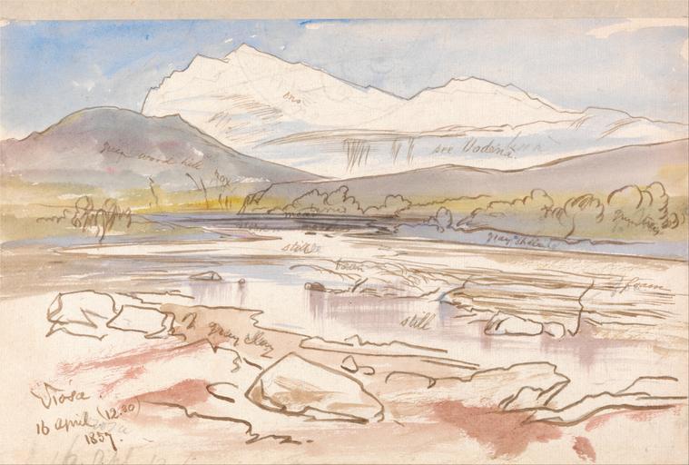 Keywords: Edward Lear - Vjose, 12-30 p.m., 16 April 1857 - Google Art Project.jpg Google Art Project watercolor London 1812 San Remo 1888 Edward male 2324653 Lear British 1812 - 1888 /collection/yale-center-for-british-art/artwork/vjose-1230-pm-16-april-1857-edward-lear/2409474/ Edward Lear Artist /artist/edward-lear/4129607/ 4129607 /collection/yale-center-for-british-art/ Yale Center for British Art 2305845 http //britishart yale edu/ 2/23/2012 10 14 00 PM /collection/yale-center-for-british-art/artwork/vjose-1230-pm-16-april-1857-edward-lear/2409474/ 1857 1857 rocks water mountains hills landscape Watercolor with pen in brown ink over graphite on medium slightly texture cream wove paper 125 2409474 False 1857 3/25/2012 6 53 30 PM YCBA/lido-TMS-4919 http //collections britishart yale edu/vufind/Record/1669170 Yale Center for British Art Gift of Donald C Gallup BA 1934 PhD 1939 painting 1850 1860 San Remo Creation w194 x h125 cm 1857 False 1 48405797101449 Item vjose-1230-pm-16-april-1857-edward-lear Vjose 12 30 p m 16 April 1857 v 194 Inscribed in brown ink lower left Viosa 16 April 12 30 1857 Not on View Watercolor with pen in brown ink over graphite on medium slightly texture cream wove paper rocks water mountains hills landscape special url_id xQHtcnLiyuw4OA PD-old-100-1923 1888 Paintings by Edward Lear Google Art Project works by Edward Lear |