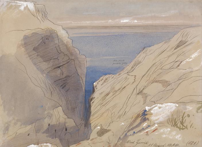 | Keywords: Edward Lear - Wied Zurrik (Malta) - Google Art Project.jpg Inscribed in brown ink lower right Wied Zurrihk 11 March 10 AM 121 ; Verso in graphite upper center Up One of 86 ; in brown ink upper cener 22 upright Lowest Not on View Watercolor with pen in brown ink and white gouache over graphite on moderately thick slightly textured gray-green wove paper sky rocks water cliffs vegetation landscape special url_id qgEMI95Sf9KeCg PD-old-100-1923 1888 Google Art Project works by Edward Lear Malta by Edward Lear 1848 in Malta Wied Babu |