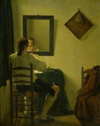 | Keywords: Een schrijver die zijn pen versnijdt Rijksmuseum SK-A-690.jpeg accession number SK-A-690 nl In een interieur versnijdt een schrijver zijn pen Hij zit aan een tafel bij het venster boven de tafel een spiegel waarin het gezicht van de man te zien is Op tafel een inktstel rechts ligt een jas over de stoel ; Jan Ekels 1759-1793 olieverf op paneel 1784 Height cm 27 5 Width cm 23 5 exhibition history 2007-2007 Milkmaid by Vermeer and Dutch Genre Painting Tokyo 2005-2006 Meesters van de Romantiek Nederlandse kunstenaars 1800-1850 Rotterdam 2004-2008 Het Rijksmuseum aan de Grens - A Enschede Institution Rijksmuseum Technique oil panel object history Acquisition 1880 object type Potential derivatives exist check http //commons wikimedia org/w/index php search Rijksmuseum+SK-A-690 this search PD-US PD-old-100 Data and photography rights All data and all images made available through the API are either in the public domain or are subject to a CC0 license https //www rijksmuseum nl/en/api/terms-and-conditions-of-use cc-zero place of creation http //www rijksmuseum nl/collectie/SK-A-690 Een schrijver die zijn pen versnijdt Q17322164 Uploaded with GWToolset Een schrijver die zijn pen versnijdt Rijksmuseum SK-A-690 http //www rijksmuseum nl/media/assets/SK-A-690 Images uploaded by Fæ Images from the Rijksmuseum Paintings by Jan Ekels II in the Rijksmuseum Amsterdam Jan Ekels II |