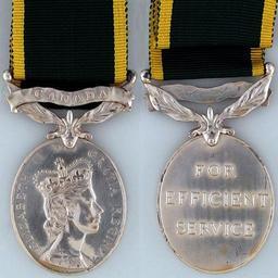 | Keywords: Efficiency Medal (Canada) Elizabeth II.jpg en The type 3 Queen Elizabeth II version of the Efficiency Medal Canada This medal version was created by Canada utilising a unique Royal Canadian Mint effigy of the Queen and was awarded only to Canadians own Derivative Decoration created by the Canadian Government c 1952 image created by uploader 2015-07-17 CC0 PD-Canada Efficiency Medal Canada 4 Military decorations of Canada Efficiency Medal | ||||