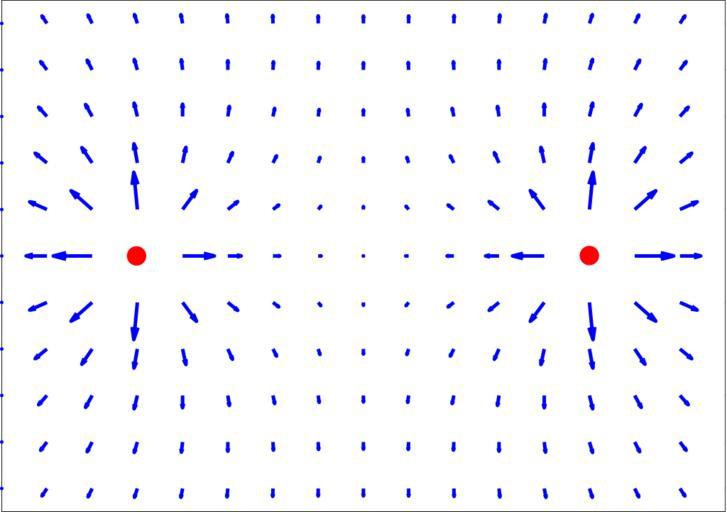 | Keywords: EfieldTwoEqualPointCharges.svg Illustration of the electric vectorfield surrounding two positive point charges Own work Vectorfield plotted in Matlab using the 'quiver' function Exported in Encapsulated Postscript EPS format; converted to Scalable Vector Graphics SVG format in GSView using 'plot-svg' via GNU libplot Added circle drawings in Inkscape GNU General Public License 2006-08-12 User Mfrosz Free for use by anyone for anything but please give credit to Wikimedia or Wikipedia Other fields MATLAB + Field diagrams |
