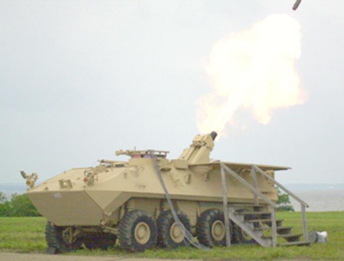 | Keywords: EFSS Dragonfire2.png A Dragon Fire 120mm mortar mounted on a Marine Corps Light Armored Vehicle fires during a recent test at the Naval Surface Warfare Center in Dahlgren Va 2003 press release from Picatinny Arsenal found at http //www pica army mil/voice2003/030912/Dragonfire htm PD-USGov-Military-Navy Firing mortars |