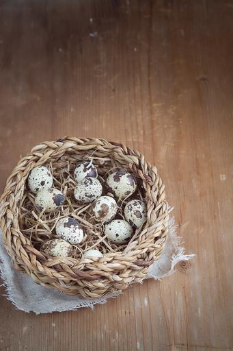 Keywords: egg quail eggs basket small eggs natural product easter wood close text freedom negative space