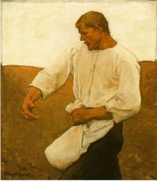| Keywords: Egger-Lienz - Sämann - 1908.jpg artwork Fragment der Erstfassung von žSämann und Teufel oil on canvas 126 x 111 cm private collection repro from art book 1908 Creator Albin Egger-Lienz Author died more than 70 years ago - public domain PD-old Albin Egger-Lienz Sowers in art |