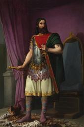 | Keywords: Égica, rey de los Visigodos (Museo del Prado).jpg Artwork Creator Carlos Esquivel y Rivas El lienzo representa a Égica rey de los visigodos que reinó entre los años 680 y 687 Sucedió al rey Ervigio y fue sucedido a su vez por su hijo el rey Witiza El rey Égica aparece pisando una piel de leopardo con el cetro en su mano derecha y descansando la mano izquierda sobre la empuñadura de la espada 1853 Oil on canvas cm 224 141 Institution Prado Depositado en el Institution Palacio de las Cortes Madrid P03766 http //www museodelprado es/coleccion/galeria-on-line/galeria-on-line/obra/egica-rey-godo/ http //www museodelprado es/coleccion/galeria-on-line/galeria-on-line/obra/egica-rey-godo/ PD-old-100 Chronological series of Kings of Spain commissioned by Isabella II Egica Carlos Esquivel y Rivas 1853 oil on canvas paintings Leopard fur-skins in art Uploaded with UploadWizard |
