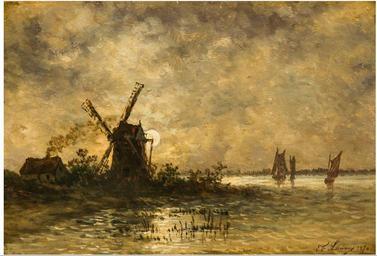 | Keywords: Egide François Leemans - River view in moonlight.jpg Artwork Creator Egide François Leemans 1874 Oil on panel size cm 22 31 accession number object history credit line signed and date 'E F Leemans 1874' lower right Sold at De Vuyst http //www de-vuyst com/nl/galerij/kunstenaars/155_90_251 PD-old-100 Egide François Leemans Marine paintings by Egide François Leemans Paintings of rivers Night landscape paintings 1874 paintings Paintings of windmills 1870s landscape paintings | ||||