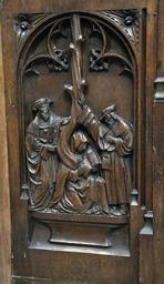 | Keywords: Eglise Orbais-l'Abbaye 2011 stalles jouee 2.jpg fr Stalles de l'église Saint-Pierre-et-Saint-Paul à Orbais l'Abbaye sculptées par Jean Huilier et offertes en 1520 par Louis de Bourbon abbé du couvent Une jouée la lignée de Sainte Anne en parallèle avec l'arbre de Jessé own Vassil 2011-02-13 Cc-zero Choir stalls of abbatiale Saint-Pierre d'Orbais-l'Abbaye |