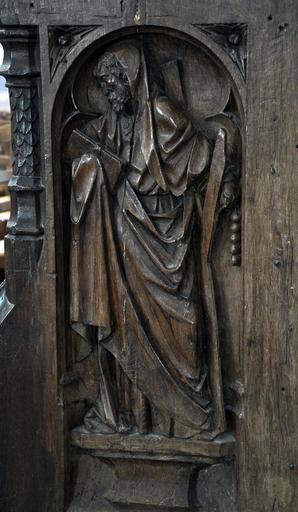 | Keywords: Eglise Orbais-l'Abbaye 2011 stalles jouee 5.jpg  fr Stalles de l'église Saint-Pierre-et-Saint-Paul à Orbais l'Abbaye sculptées par Jean Huilier et offertes en 1520 par Louis de Bourbon abbé du couvent Une jouée Saint-André own Vassil 2011-02-13 Cc-zero Choir stalls of abbatiale Saint-Pierre d'Orbais-l'Abbaye |