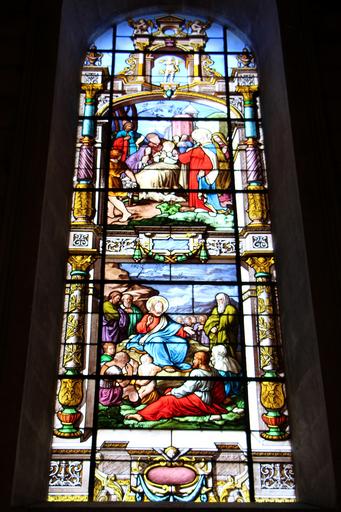 | Keywords: Eglise Saint-Louis de La Roche-sur-Yon, vitraux Lusson et Lefèvre 09.jpg fr La fille de Jaïre revient à la vie et Sermon sur la montagne 2016-10-01 14 03 44 own William Chevillon other versions cc-zero Stained glass windows of Église Saint-Louis de La Roche-sur-Yon |