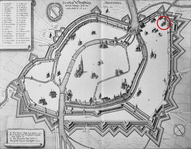 Keywords: Eglise Sainte-Aurélie de Strasbourg-Merian-1643.jpg Localisation de l'église Sainte-Aurélie sur un plan de Strasbourg Merian 1643 Attention orientation sud-nord Commons 1643 Merian File Topographia Alsatiae Merian p 022 JPG p_021 p_023 Église Sainte-Aurélie Strasbourg 17th-century maps of Strasbourg Old maps of territories in the Upper Rhenish Circle Strasbourg |