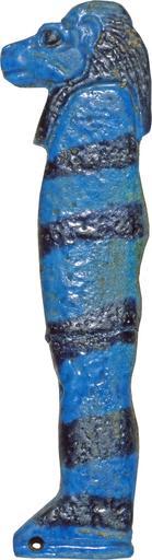 | Keywords: Egyptian - Amuletic Figure of Hapy, Son of Horus - Walters 481641.jpg This faience amulet represents Hapy the baboon-headed son of Horus There are four sons of Horus and this amulet is part of a set of four Walters 48 1638-1641 The sons of Horus protected he vital organs of the body after mummification The image is that of a baboon-headed mummiform human The figure faces proper right It is composed of blue glazed faience with the details picked out in purple/black manganese The figure wears a tripartite wig but unlike the other three in this set he does not wear a broad collar There are five diagonal stripes of manganese across the mummiform body representing the mummy wrappings or braces A horizontal fracture at knee level separated the amulet into two fragments which have since been reattached Numerous funerary amulets were usually placed among the many layers of linen strips used to wrap mummies Specific amulets along with their required position on the body are listed in funerary texts such as The Book of the Dead Amulets were sometimes sewn directly onto the wrappings or could be incorporated into a bead net shroud covering the mummy These amulets have been modeled with a flat underside and are pierced by tiny holes around the edges for attachment ca 750 650 BC Third Intermediate Egyptian faience with blue and black glaze cm 9 2 5 0 7 accession number 48 1641 4506 Henry Walters Baltimore date and mode of acquisition unknown Walters Art Museum Henry Walters Acquired by Henry Walters Jewelry - Ancient to Modern The Walters Art Gallery Baltimore 1979-1980 Objects of Adornment Five Thousand Years of Jewelry from the Walters Art Gallery Baltimore Cooper-Hewitt National Design Museum New York; Chrysler Museum of Art Norfolk; Carnegie Museum of Art Pittsburgh; San Antonio Museum of Art San Antonio; Philbrook Museum of Art Tulsa; Honolulu Academy of Arts Honolulu; New Orleans Museum of Art New Orleans; Milwaukee Art Museum Milwaukee; Minneapolis Institute of Arts Minneapolis; Toledo Museum of Art Toledo; The John and Mable Ringling Museum of Art Sarasota 1984-1987 Jewelry from the Walters Art Museum and the Zucker Family Collection The Walters Art Gallery Baltimore 1987 Faience The Colors of the Heavens The Walters Art Museum Baltimore; The Walters Art Museum Baltimore 2003-2004 place of origin Egypt Walters Art Museum license Ancient Egyptian amulets in the Walters Art Museum Hapi Ancient Egyptian faience in the Walters Art Museum Media contributed by the Walters Art Museum needs category review |