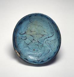 | Keywords: Egyptian - Bowl with Fish and Lotuses - Walters 48400 - Interior.jpg Shallow faience bowls of this type were particularly popular during the early to mid-18th Dynasty Faience was a commonly used material in Egypt; it was made from silica--found for example in quartz pebbles sand or lime--and formed in a mold Its blue or turquoise glaze came from inclusions of copper as a colorant This bowl was molded over a hemispherical form and then glazed and fired The dark purple decoration often added to monochrome faience pieces was painted before firing with a manganese-based pigment These vessels sometimes described as marsh bowls are typically embellished with aquatic imagery with allusions to fertility such as tilapia fish lotuses papyrus umbels buds on stems and pools of water The bright blue of faience as well as the aquatic motifs adorning these bowls is associated with the life-giving qualities of cool fresh water The blue lotus Nymphaea caerulea and the tilapia fish Tilapia nilotica are emblematic of such imagery Here two fish carry lotus stems with buds and opened blossoms in their mouths The ornamentation relates to the powerful themes of rebirth and regeneration ca 1450 1400 BC New Kingdom Egyptian faience with blue glaze painted cm 5 14 2 h x diam accession number 48 400 1216 Rev William MacGregor Tamworth Staffordshire prior to 1922 Sale Sotheby Wilkinson Hodge London June 26-29 and July 4-6 1922 Dikran Kelekian Paris and New York 1922 by purchase Henry Walters city Baltimore Walters Art Museum Henry Walters Acquired by Henry Walters 1923 Life and Art in Ancient Egypt The Detroit Institute of Arts Detroit 1963 Through Ancient Eyes Portraiture in Ancient Egypt Birmingham Museum of Art Birmingham 1988 place of origin Western Thebes Egypt Walters Art Museum license Ancient Egyptian pottery in the Walters Art Museum Ancient Egyptian daily life preserved artefacts Media contributed by the Walters Art Museum needs category review Ancient Egyptian lotus Lotus pot |