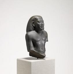 | Keywords: Egyptian - Bust of a "Libyan" Dignitary - Walters 22398 - Three Quarter Right.jpg This fragment from a statue that showed its owner kneeling before his god reflects classic elements of Egyptian sculpture It was created at a time when Egypt was also influenced by Nubian and Libyan culture though as can be seen in the heavy folds of flesh around the mouth and the shape and placement of the eyes ca 660 650 BC Late Period greywacke cm 37 18 5 10 4 accession number 22 398 16717 Giovanni Dattari Collection Cairo date and mode of acquisition unknown Sale Hôtel Drouot Paris June 17-19 1912 no 293 Dikran Kelekian New York and Paris date and mode of acquisition unknown Henry Walters city Baltimore Walters Art Museum Henry Walters Acquired by Henry Walters 1924 place of origin Thebes present-day Luxor Egypt Walters Art Museum license Ancient Egyptian statues in the Walters Art Museum Media contributed by the Walters Art Museum needs category review Ancient Egyptian art made from greywacke Statues of the Egyptian late period |