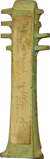 | Keywords: Egyptian - Djed-Pillar - Walters 482864 - Back.jpg Large Djed-pillars such as this were used for the living in festival or temple contexts but were also attached to the body of a deceased Usually they were used as part of an amulet set which included more than one of these pillars This pillar dates in the Late Period 664-332 BC and is excellent example for the high quality of amulet production of the 26th Dynasty 664-525 BC between 664 332 BC Late Period Egyptian faience with light-green glaze cm 10 45 3 1 1 08 accession number 48 2864 80069 Possibly excavated at Saqqara and sold at the art market in Cairo in the early 20th century Mr Albert Cousins date and mode of acquisition unknown Walters Art Museum Gift of Mr Albert Cousins 1982 place of origin Egypt Walters Art Museum license Ancient Egyptian amulets in the Walters Art Museum Ancient Egyptian faience in the Walters Art Museum Djed amulet Media contributed by the Walters Art Museum needs category review |