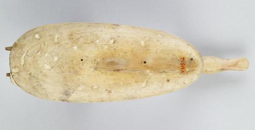 | Keywords: Egyptian - Duck Cosmetic Box - Walters 71519 - Bottom.jpg The wings of this charming cosmetic container pivot outward revealing a storage compartment The eyes were once inlaid The pintail duck is one of Egypt's most common species of waterfowl and was a popular decorative motif between 1550 1196 BC New Kingdom hippopotamus ivory elephant ivory bone cm 7 6 6 20 5 accession number 71 519 13782 Reverend Wiliam MacGregor Collection Sale Sotheby's London 1922 no 703 Henry Walters city Baltimore from unknown dealer in Paris Walters Art Museum Henry Walters Acquired by Henry Walters 1925 place of origin Japan Walters Art Museum license Ancient Egyptian art in the Walters Art Museum Birds in Ancient Egypt Ancient Egyptian kohl spoons Works of the Egyptian New Kingdom |