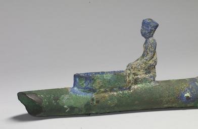 | Keywords: Egyptian - Egyptian Incense Burner - Walters 54498 - Detail.jpg A staff of priests and priestesses performed the daily rituals of the Egyptian temple A chief priest tended to the cult image of the temple's god or goddess in the name of the king who was thought to have daily need of food and clothing Lesser ranking priests attended to offerings and performed the minor parts of the temple rituals Incense burners were used extensively in temple and funerary ceremonies to purify the sacred space The handle of this incense burner ends in a falcon's head At the center is a figure of a king kneeling before a cartouche-shaped pan that held incense pellets The other end now missing was shaped like a hand holding a small pan for burning the incense century 7 4 BC late Third Intermediate-Late Period bronze cm 31 accession number 54 498 19955 Dikran Kelekian New York and Paris date and mode of acquisition unknown Henry Walters city Baltimore Walters Art Museum Henry Walters Acquired by Henry Walters 1909 Faces of Ancient Arabia The Giraud and Carolyn Foster Collection of South Arabian Art The Walters Art Museum Baltimore 2008 place of origin Egypt Walters Art Museum license Ancient Egyptian art in the Walters Art Museum Incense burner arm |