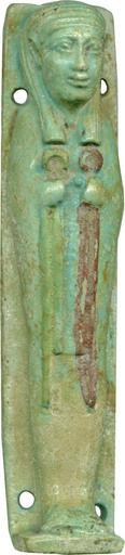 | Keywords: Egyptian - Figure of Imsety, Son of Horus - Walters 481644.jpg During the process of mummification amulets of different kinds were placed on the body or wrapped in the mummy bindings to protect the deceased from the dangers of the underworld Figures of the four Sons of Horus the gods who protected the containers that held the organs of the deceased were an indispensable part of a complete set of amulets This figure of the human-headed god Imsety who was responsible for the liver is formed in the round and has a backplate and base The mummiform god wears a long wig and holds a long folded cloth in each hand 1st half 4th century BC Late Period Egyptian faience with green and black glaze cm 7 7 1 8 1 6 accession number 48 1644 19384 Henry Walters Baltimore date and mode of acquisition unknown Walters Art Museum Henry Walters Acquired by Henry Walters Faience The Colors of the Heavens The Walters Art Museum Baltimore; The Walters Art Museum Baltimore 2003-2004 Daily Magic in Ancient Egypt The Walters Art Museum Baltimore 2006-2007 Mummified The Walters Art Museum Baltimore 2008-2013 place of origin Egypt Walters Art Museum license Ancient Egyptian amulets in the Walters Art Museum Ancient Egyptian faience in the Walters Art Museum Imset Media contributed by the Walters Art Museum needs category review |
