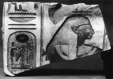 | Keywords: Egyptian - Fragment in Sunk Relief of Female Deity Bearing Offerings - Walters 2293 (2).jpg These two together with Walters 22 100 well-preserved painted relief sculptures originally belonged to a depiction of a procession of gods who represented the 42 nomes or regions of Egypt They once decorated the lower part of the southeast wall of the First Hall containing eight columns within a temple dedicated to the god Osiris built at Abydos by Ramesses II The lower portion of both figures remains in place in the Ramesses temple where they are exposed to the elements The reliefs shown here however have retained their vivid color The deities bring offerings for the cult of Osiris in Ramesses' name Their faces follow the portrait style of Ramesses II with oval eyes slightly hollowed eyelids a small mouth and a prominent beaked nose Note the remains of the hieroglyph above each figure's head indicating that he or she is the personification of a region The raised area of these nome-signs retains red pigment A portion of the abundant offerings the male deity bears is preserved His blue skin associates him with the forces of creation Original pigments also include yellow on the female deity's face blue on her wig and light green on the plant stalks she holds in her right hand ca 1270 BC New Kingdom limestone with paint cm 28 32 5 5 accession number 22 93 696 Dikran Kelekian New York and Paris Henry Walters city Baltimore Walters Art Museum Henry Walters Acquired by Henry Walters 1912 Transcription n nb t3wy Wsr-m3't-r' ; Translation for the lord of the two lands Usermaatre Ramesses II place of origin Araba al-Madfuna Egypt Place of Discovery <gallery> File Egyptian - Fragment in Sunk Relief of Female Deity Bearing Offerings - Walters 2293 jpg </gallery> Walters Art Museum license Ancient Egyptian reliefs in the Walters Art Museum Egyptian deities of nomes Media contributed by the Walters Art Museum needs category review |