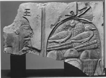 | Keywords: Egyptian - Fragment in Sunk Relief of Male Fecundity Figure Bearing Offerings - Walters 22100.jpg These two together with Walters 22 93 well-preserved painted relief sculptures originally belonged to a depiction of a procession of gods who represented the 42 nomes or regions of Egypt They once decorated the lower part of the southeast wall of the First Hall containing eight columns within a temple dedicated to the god Osiris built at Abydos by Ramesses II The lower portion of both figures remains in place in the Ramesses temple where they are exposed to the elements The reliefs shown here however have retained their vivid color The deities bring offerings for the cult of Osiris in Ramesses' name Their faces follow the portrait style of Ramesses II with oval eyes slightly hollowed eyelids a small mouth and a prominent beaked nose Note the remains of the hieroglyph above each figure's head indicating that he or she is the personification of a region The raised area of these nome-signs retains red pigment A portion of the abundant offerings the male deity bears is preserved His blue skin associates him with the forces of creation Original pigments also include yellow on the female deity's face blue on her wig and light green on the plant stalks she holds in her right hand ca 1270 BC New Kingdom limestone with paint cm 26 36 5 5 accession number 22 100 26276 Dikran Kelekian New York and Paris Henry Walters city Baltimore Walters Art Museum Henry Walters Acquired by Henry Walters 1912 place of origin Araba al-Madfuna Egypt Place of Discovery Walters Art Museum license Ancient Egyptian reliefs in the Walters Art Museum Reliefs of the 19th dynasty of Egypt Egyptian deities of nomes Media contributed by the Walters Art Museum needs category review Sunken-reliefs of ancient Egypt |