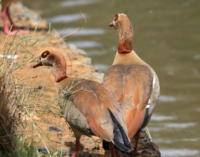 Keywords: egyptian geese geese brown buff pond water
