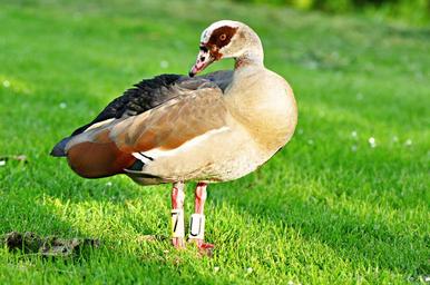Keywords: egyptian goose goose waterfowl bird standing rings identification animal fauna wildlife grass