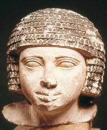 | Keywords: Egyptian - Head of a Man - Walters 2262.jpg This excellently worked head once belonged to a statue of a dignitary but is now broken off at the neck The head displays attention to detail both in the treatment of the facial features and in the careful indication of the tight curls forming the owner's wig Remnants of a black-painted uninscribed pillar reach the middle of the back of the head He wears a black wig of short concentric curls that covers his ears His flesh was originally red the typical skin color used to represent ancient Egyptian males ; however only traces of red pigment remain around the edge of the face the corners of the eyes the sides of the neck and on the mouth The eyebrows and lids are carved in low relief In addition to the extensive loss of pigment and the break at the neck there is also damage to the nose chin lips and the cheeks of this piece ca 2350 2280 BC Old Kingdom limestone with paint cm 13 11 12 5 accession number 22 62 33921 Dikran Kelekian New York and Paris Henry Walters city Baltimore Walters Art Museum 1931 by bequest Acquired by Henry Walters 1912 place of origin Egypt Walters Art Museum license Ancient Egyptian statues in the Walters Art Museum Statues of the Egyptian Old Kingdom |