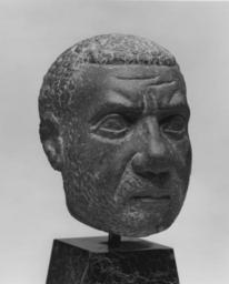 | Keywords: Egyptian - Head of a Man - Walters 229 - Three Quarter.jpg Hellenistic sculpture was the model for this head's facial features and short curly hairstyle while the choice of a hard dense stone as its material is Egyptian The head represents an elderly man with short hair beard and mustache He has a heavily lined forehead and deep nasolabial furrows between 150 100 BC Greco-Roman granodiorite cm 26 23 5 13 5 accession number 22 9 27070 Dikran Kelekian New York and Paris Henry Walters city Baltimore Walters Art Museum Henry Walters Acquired by Henry Walters 1913 Early Christian and Byzantine Art Baltimore Museum of Art Baltimore 1947 place of origin Egypt Walters Art Museum license Ancient Egyptian statues in the Walters Art Museum Statues of the Ptolemaic dynasty Old age in Ancient Egypt |