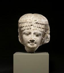 | Keywords: Egyptian - Head of a Queen, Perhaps Cleopatra II or Cleopatra III - Walters 22407 (2).jpg Shown wearing a heavy wig composed of tiers of corkscrew curls the queen also has a headband with a coiled uraeus serpent above her brow Of the seven Ptolemaic queens named Cleopatra the last being the Cleopatra associated with Julius Caesar and Marc Antony this head may represent Cleopatra II or her daughter Cleopatra III both of whom lived in the 2nd century BC The facial features are more individualized reflecting the Greek influence of the Ptolemaic royal court ca 140 120 BC Greco-Roman limestone cm 24 7 17 8 22 5 accession number 22 407 24043 Dikran Kelekian New York and Paris date and mode of acquisition unknown Henry Walters city Baltimore Walters Art Museum Henry Walters Acquired by Henry Walters 1928 From Alexander to Cleopatra Greek Art of the Hellenistic Age The Walters Art Gallery Baltimore 1988-1989 place of origin Egypt <gallery> File Egyptian - Head of a Queen Perhaps Cleopatra II or Cleopatra III - Walters 22407 jpg </gallery> Walters Art Museum license Ancient Egyptian statues in the Walters Art Museum Statues of the Ptolemaic dynasty Ancient Greek busts in the United States Ancient Greek busts of women Braids in art BC Egypt |
