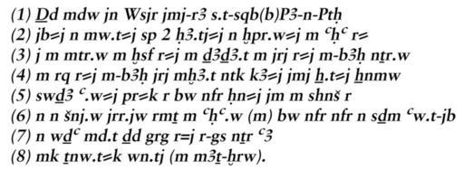 | Keywords: Egyptian - Heart Scarab - Walters 4281 - Transcription.jpg This serpentine scarab has a flat underside with a vertically arranged inscription with the text from spell 30B of the Book of the Dead The back of the scarab has a detailed design with a polished surface and almost balanced proportions The workmanship is good and the piece is carefully made This scarab functioned as an independent user individualized funerary amulet with a renewal connotation and supportive function for the deceased in the Court of the Dead between 1070 736 BC Third Intermediate black-brown serpentine cm 2 7 4 4 6 3 accession number 42 81 27145 Henry Walters Baltimore date and mode of acquisition unknown Walters Art Museum Henry Walters Acquired by Henry Walters Translation Recitation of Osiris the head of beverages depot Pa-en-Ptah / Heart that I received from my mother heart that I received from my mother heart of my different ages do not stand up against / me as witness; do not contradict me in the court; do nothing against me in front of the deities; / do not treat me with hostility in front of the Keeper of the Balance You are my Ka life-force which is in my body; the creator / who makes the limbs of my body whole; you may come out to the beautiful place which is there prepared for me Do not cause my name / to stink in the presence of the members of the court who make people to resurrected at the beautiful place Excellent is it for the posers; a pleasure is it / for the judge Do not speak lies against me beside the great god / See you are elected to exist as a justified one place of origin Egypt Walters Art Museum license 2D Ancient Egyptian scarabs in the Walters Art Museum Hieroglyphs on scarabs Heart scarabs Man with staff hieroglyph |